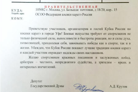 в адрес Федерации Косики каратэ и Кубка России по Косики