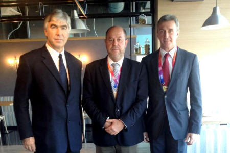На фото президент Всемирного союза Косики каратэ и Федерации Косики каратэ России Ханси М.В.Крысин (заслуженный тренер и заслуженный мастер спорта России, президент Германского союза Косики каратэ), президент Всемирной Федерации каратэ (World Karate Federation) Антонио Эспиноз (Antonio Espinos) и президент Федерации каратэ России С.В.Соколовский...