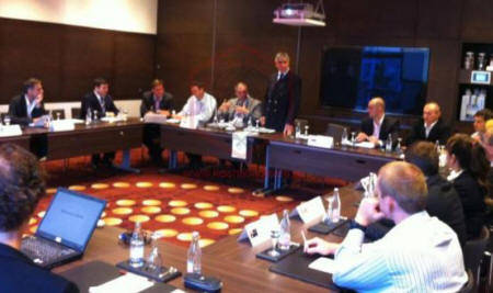 НСНБР: Третий Международный конгресс стратегии и развития Косики каратэ. Берлин. Германия. Год 2011. На фото президент Всемирного союза Косики каратэ М.В.Крысин (в центре) объявляет конгресс открытым.