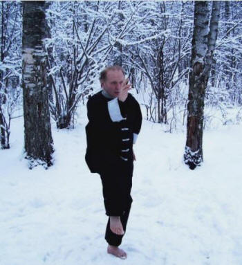 градусном морозе, на снегу и босиком...