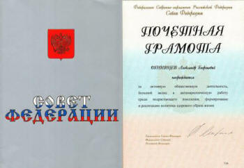 А.Г.Огнивцев был награжден в Совете Федерации 18 декабря