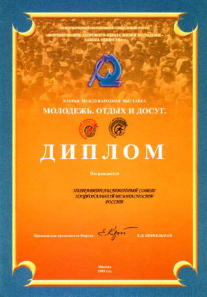 Почетный диплом УФКСН России по городу Москве. 3-й Молодежный