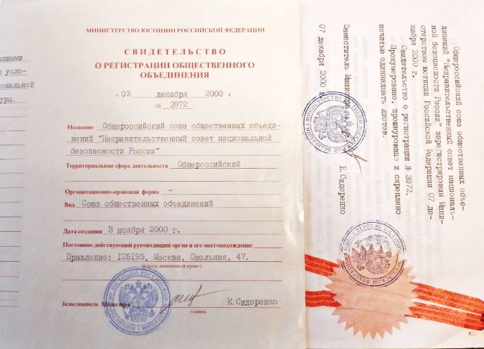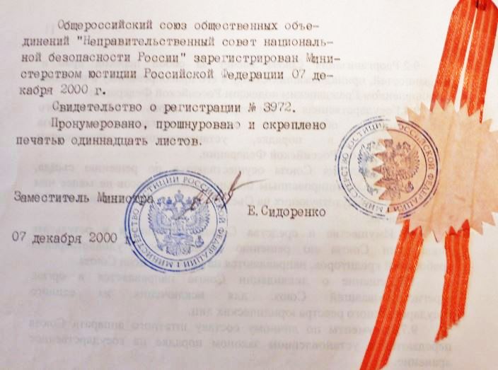 Общероссийского союза общественных объединений НСНБР ранее и Неправительственного совета национальной безопасности России
