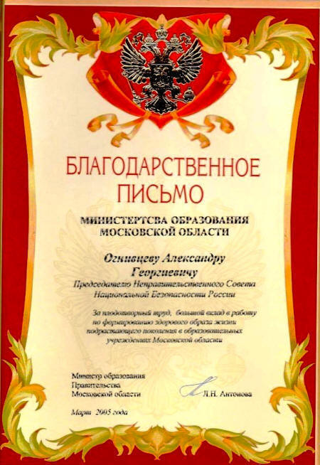 А.Г.Огнивцев был награжден Благодарственным письмом министра