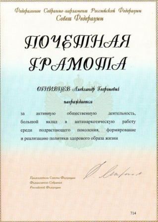 Почетная Грамота Совета Федерации Федерального Собрания