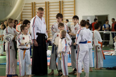 Заботливые руки тренера. Кубок России по Косики каратэ 2012.