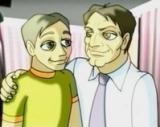 предметом по руке. Случайно. Извиняется. Обнимает и